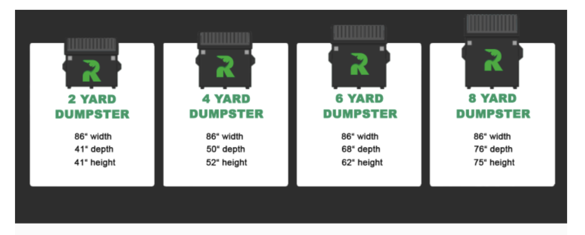 Dumpster service ranging from 2 to 8 cubic yards